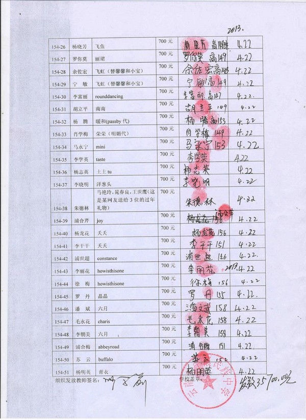 154-50苏云,因中途辍学,资助款转给沙森;