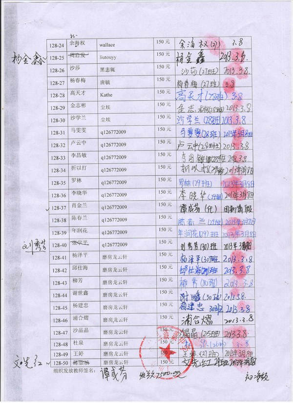 学生领款照片(与124批、133批一起发放):