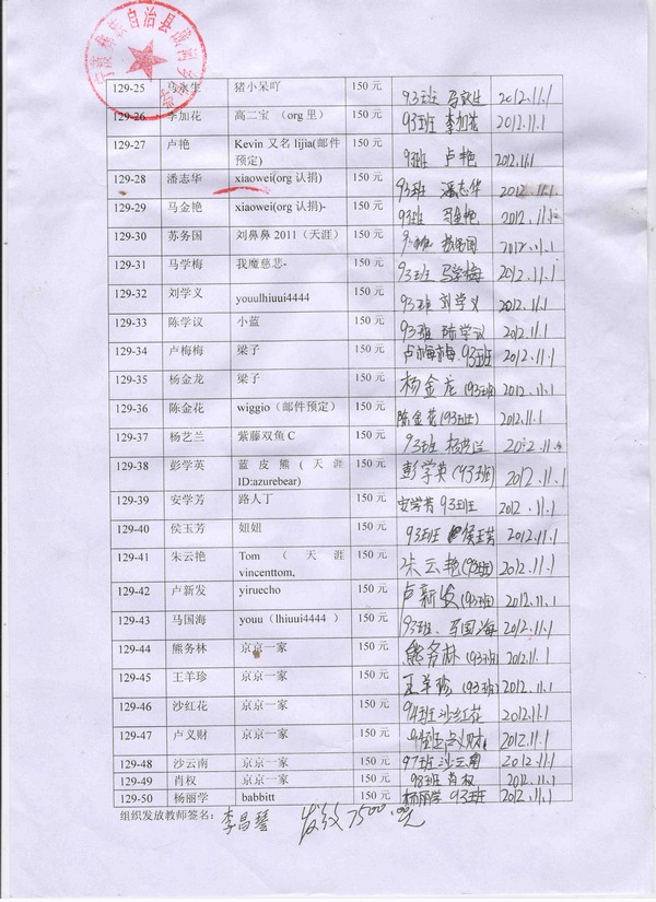 标题: 第129批受助生名单(战河中学50名,认捐完毕,2人未汇款)