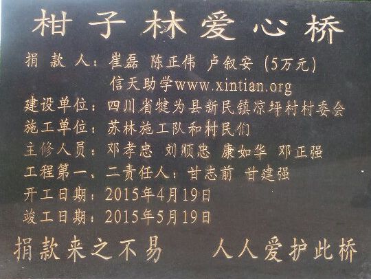 标题: 第33座桥:四川省四川省犍为县新民镇凉坪村一组柑子林桥(崔陈卢)