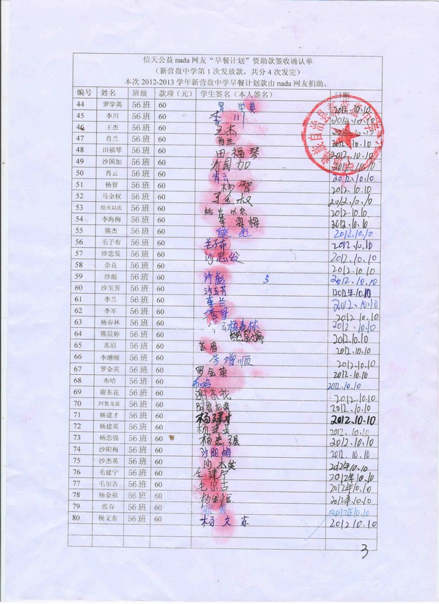 » 2012.9-2013.7早餐计划-宁利中学/新营盘中学(nada网友第3年捐)