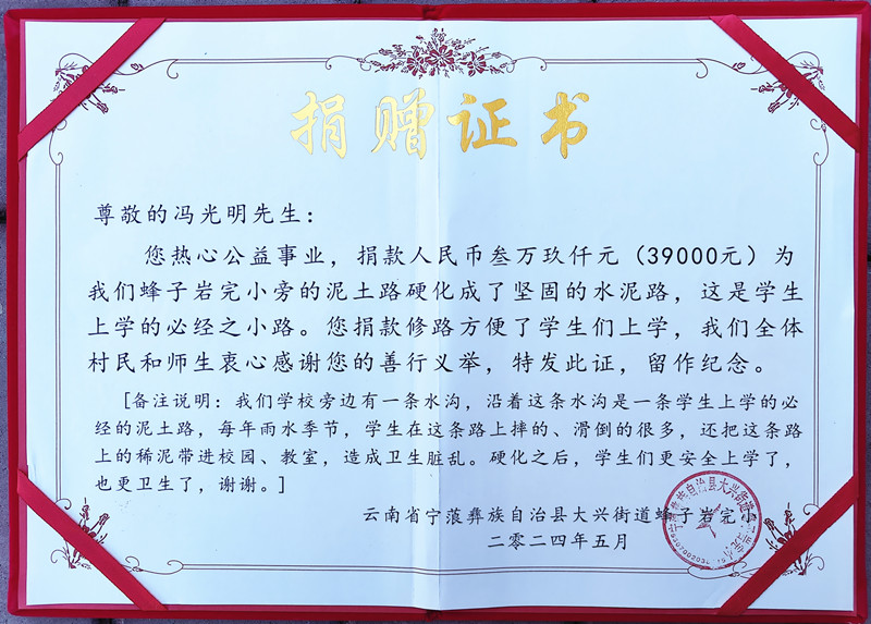 捐赠证书。