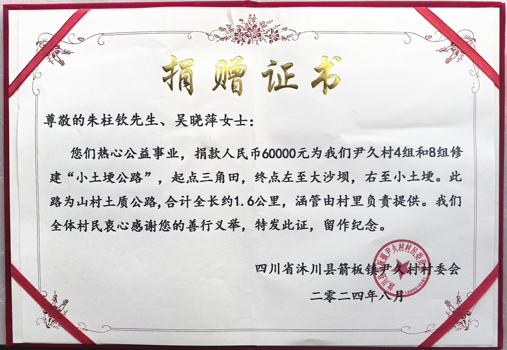 (1)爱心人捐款、村民投工投劳一起修土路,干季能通车;