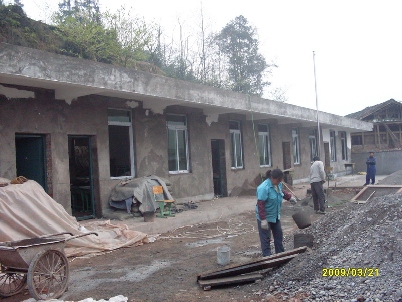 晏家林总是下雨,这在马边是很特殊的,其他地方雨水都停了,这里却还一直在下,道路泥泞甚至经常断路,材料运输困难。现在还有两间房子没有抹灰,地坪没有做完,其他部分都竣工了。