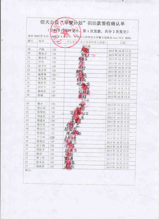 信天公益“早餐计划”捐助款签收确认单2(宁利乡白草坪完小).jpg