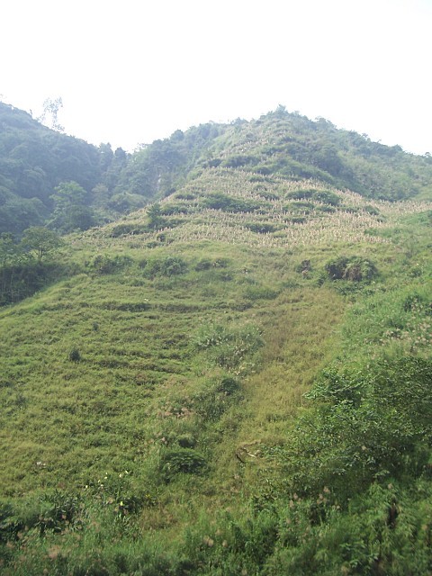 周老师和曹师傅准备先到较远的土坝村校,而马队是往高山上的十二坝村校工地运送物资。可以看见,刚才遇到的马队已经在爬对面的大坡了……