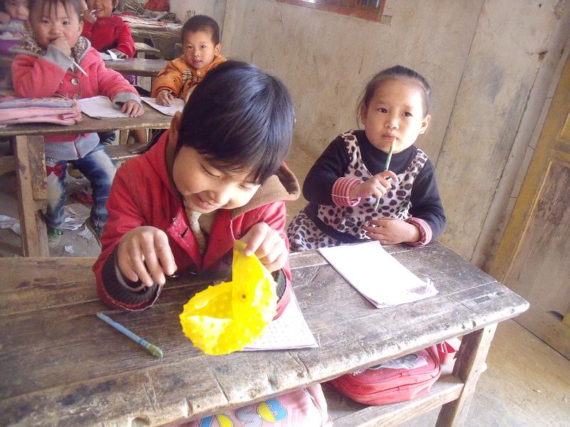 已到学校等待上课的孩子们。