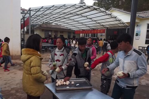 宁利中学,学生们吃鸡蛋照片