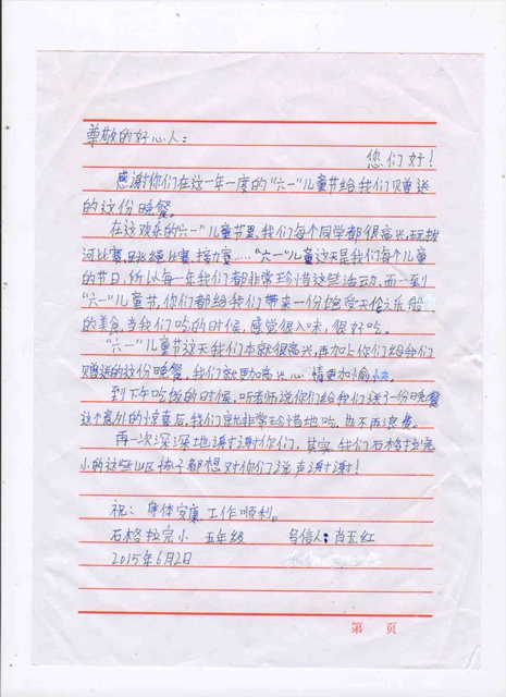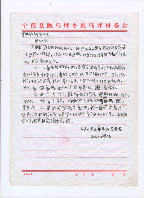 2015年六一节日宴学生感谢信3(跑马坪一贯制学校,羊安山完小).jpg