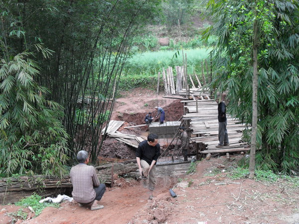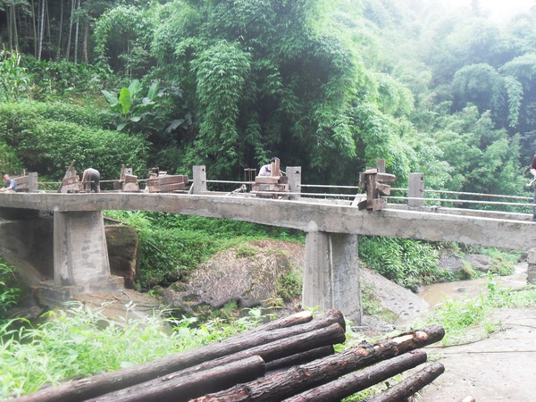 高洞子和水井湾现已完工,但修好的桥面距河面太高,为人们过桥的安全考虑,后又加修了护栏,以下是两座桥修护栏的一些照片: