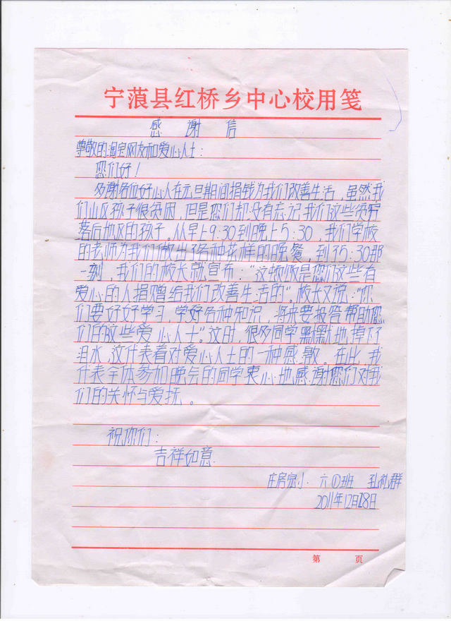 红桥中心校,庄房完小2012年元旦慈善晚宴学生感谢信2.jpg