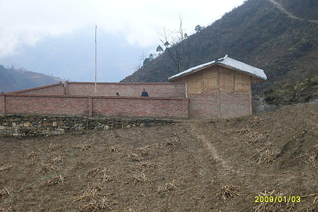 村民义务投工投劳修的保坎,尽可能为孩子们准备一个操场——这不计入造价——周老师和二坪乡中心校教导主任要求村委会尽可能动员村民参与学校的修建,目睹是让村民认识“我们自己修学校”,增加对学校的认同感……