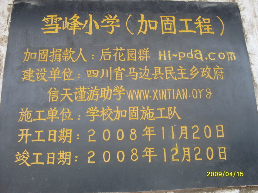 : [雪峰小学加固的石碑,捐助人一项已经补充了H-ipda网友]]