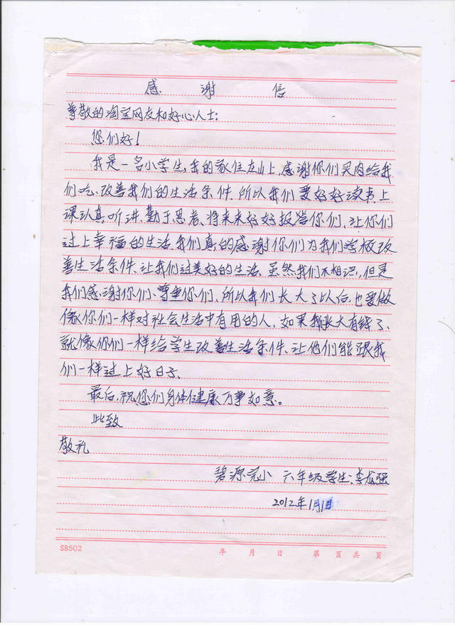 西布河中心校,大沟完小2012年元旦慈善晚宴学生感谢信1.jpg