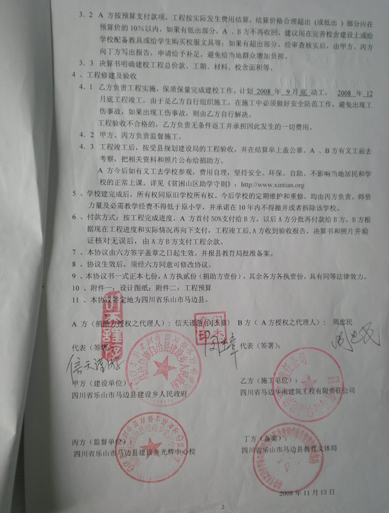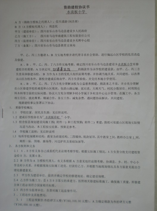 三、《资助建校协议书》及附件《图纸》和《工程预算单 》