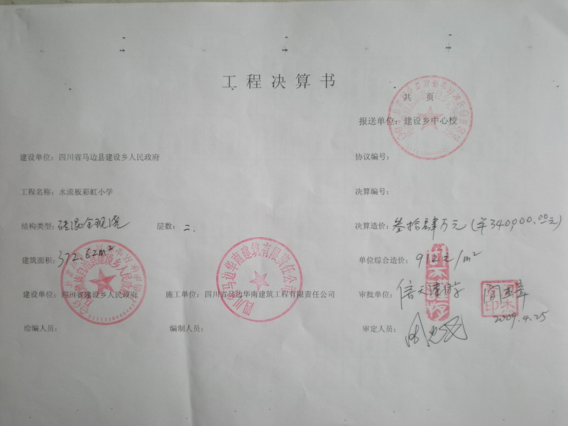 标题: 第105所:四川省乐山市马边县建设乡水流板小学修建总结