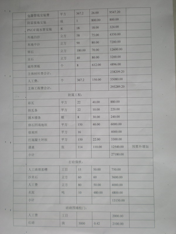 水流板小学预算