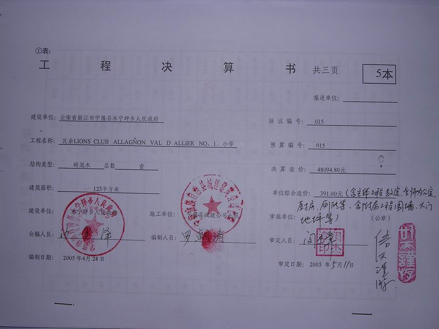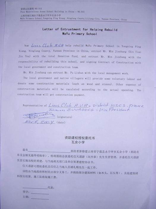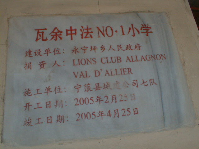 We will begin to build Wa Yu School after the Chinese New Year Festival. The name Lions Club International C Allagnon Val d’Allier C France will be engraved on the plaque.