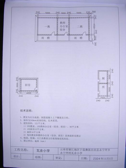 瓦余中法NO.1小学之修建共有以下几部分: