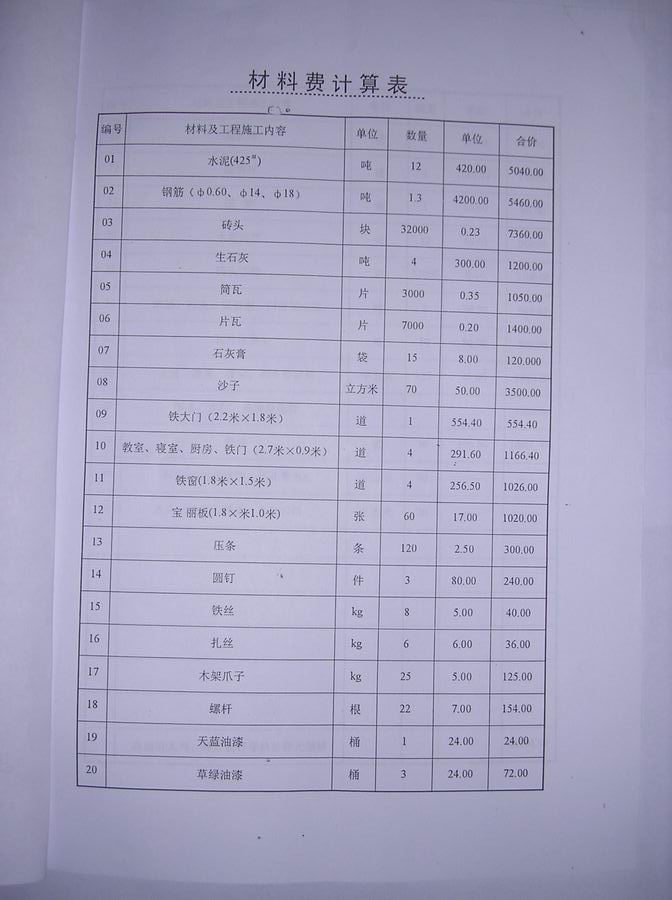 In building this school, we will carry out the plan carefully as usual and provide you with a detailed list of all the materials and money needed.