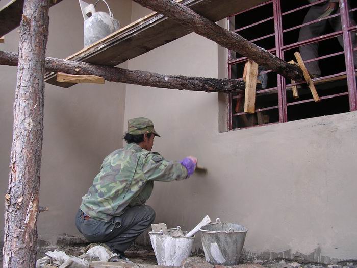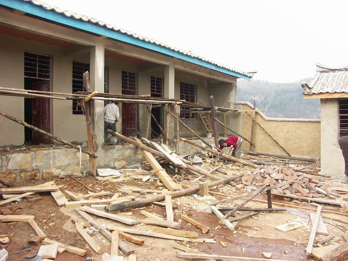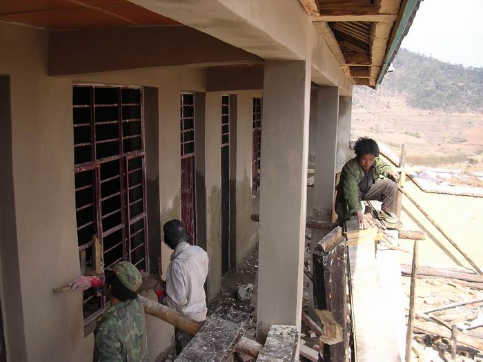 我们以前修建的学校都是由村民出义务工,捐助木头,石头等材料,这样可以节省捐助费。钱是省了,可义务工出起来十分困难,村民都居住在山上,很零散,有的村民出工一天光花在路上就有4个小时。碰到不出工的农户,村民大会宣布说可以去他家捉鸡吃,白吃。可实施起来比较困难,有几所学校修建中就有不出工的村民,村长两条腿跑了几天催促也没有效果,最后只好自己替他们出工并捐助了材料。到了瓦余这所,事态扩大了,有户村民不出工,村长去催,催了几次,矛盾激化,结果村长被那户人用刀砍破了头,伤及头骨,住进了医院进行手术。不能说那里民风不好,主要是太穷了,有的村民把自己家的床板都拆了盖学校,面对这样的村民,我们又能说什么呢?