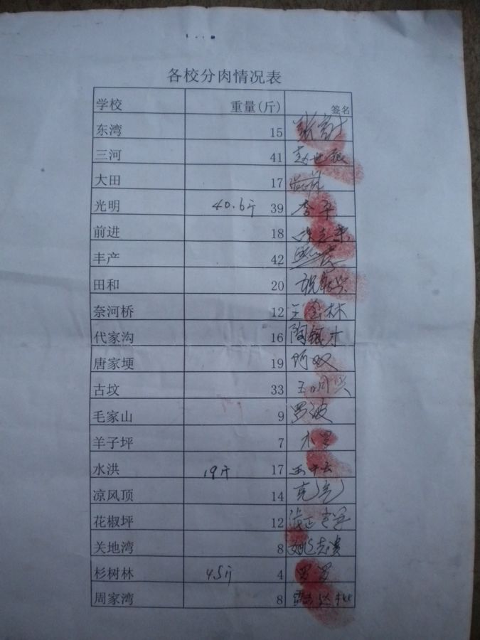 民主乡中心完小得到了捐赠的猪肉,考虑到更远的山村小学的学生也想吃,中心完小就把猪肉也分发给了民主乡里19所乡村小学,这些小学由于地处偏远,大多在大山深处,很多学校是一师一校,就是一个学校只有一个老师,两个班级约10几个学生,所以,也分给他们几斤肉,学生多的村小分到几十斤肉,大家一起过一个快乐的新年。