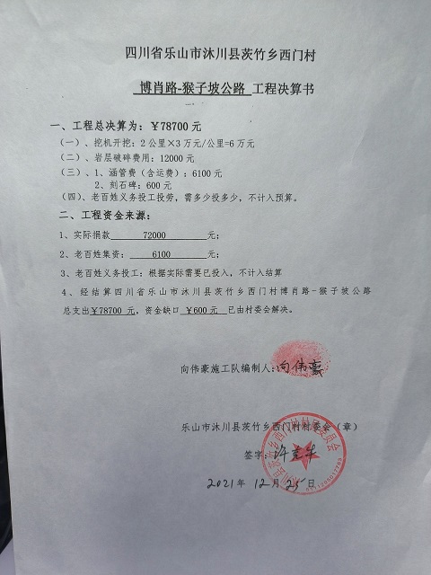 (1)爱心人捐款、村民投工投劳一起修土路,干季能通车;