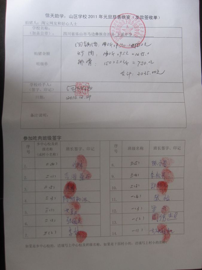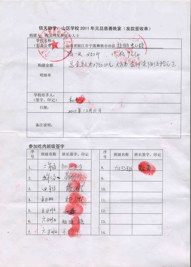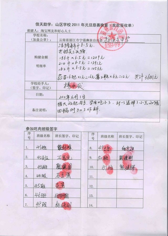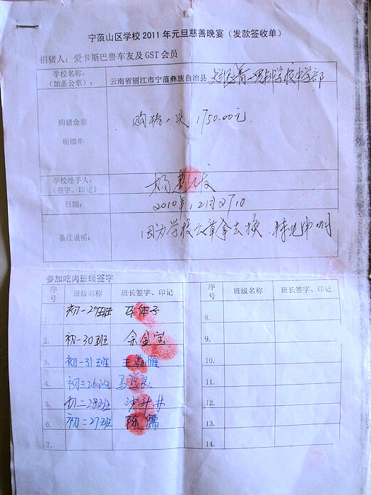拉佰中学2011年元旦慈善晚宴签收单