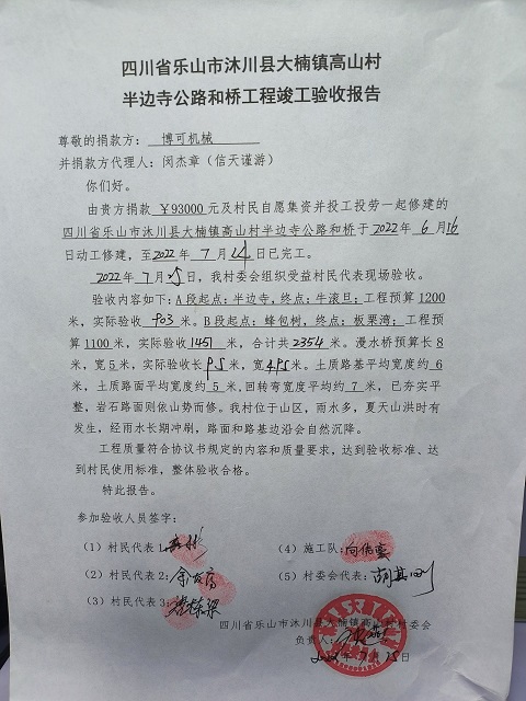 标题: 第320条:四川省沐川县大楠镇高山村1组半边寺公路和桥-已定