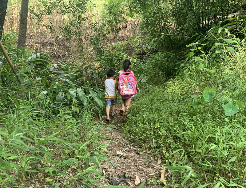 小学生上学之路,等修好了路之后,就可以坐拖拉机、面包车上学了,或者骑自行车上学了。