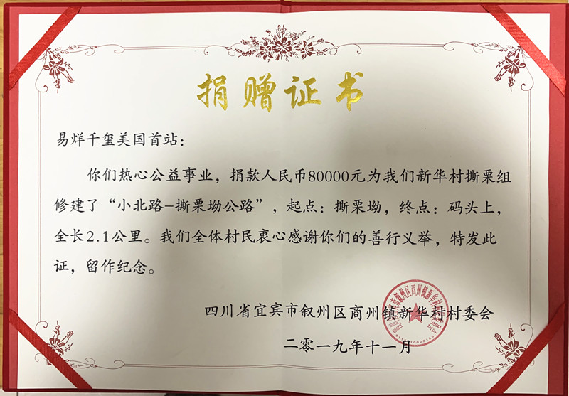 捐赠证书。