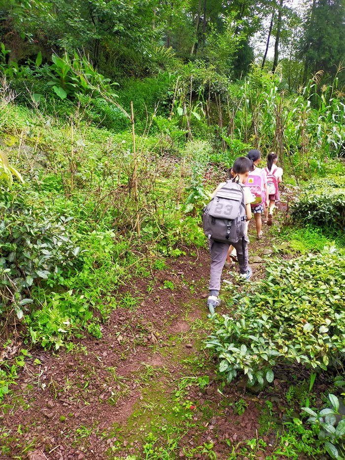 小学生上学之路,等修好了路之后,就可以坐三轮车、面包车上学了,或者骑自行车上学了。