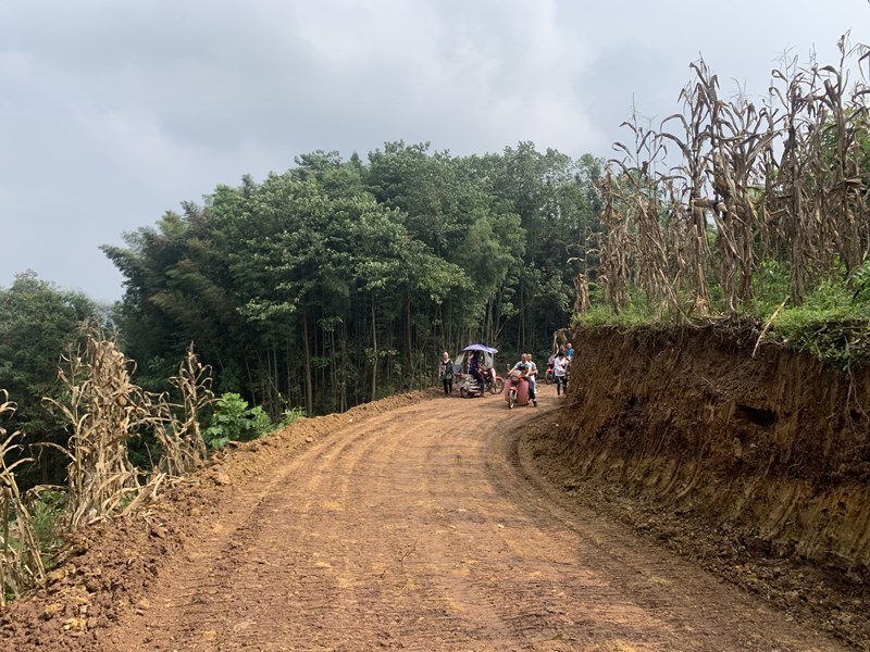 小学生上学之路,等修好了路之后,就可以坐三轮车、面包车上学了,或者骑自行车上学了。