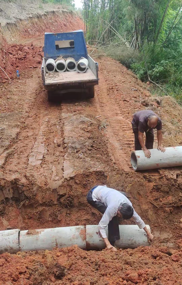 8月26日开工,10月份已基本完工。工程快完工时间段直到现在天气老是下雨,没有连续两天晴朗的天气,刚挖好的毛坯路面无法通行汽车,所以就暂时没有举行竣工仪式。在施工过程中天气好的时侯,村民已经有汽车和三轮车载重通行了。