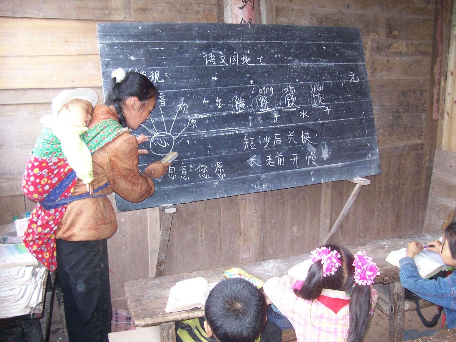 这个学校的学生有多个民族的成分:汉族、彝族、苗族……由于历史原因和交通不便,这里群众生活依然没有摆脱贫困,大多孩子都是用饲料袋、化肥袋当作书包用……