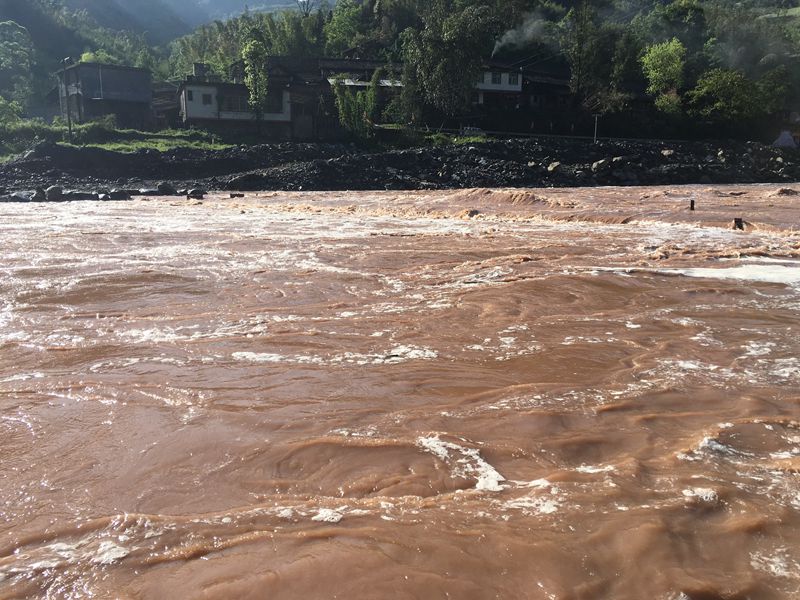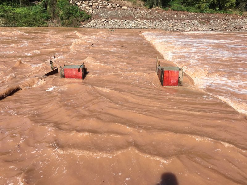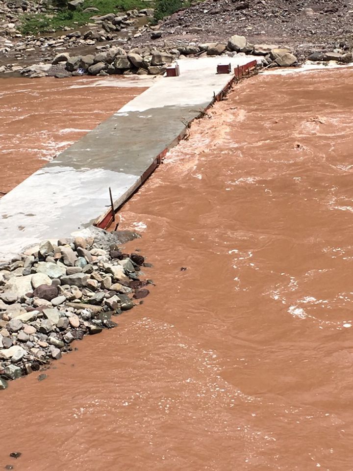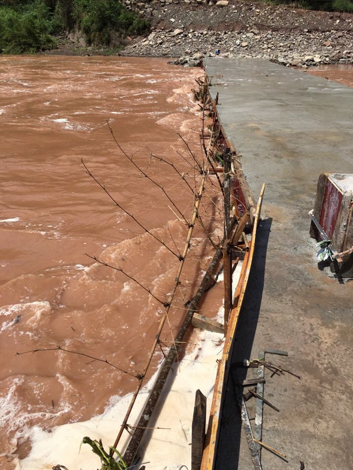 昨天4月15日,下了特大暴雨,晚上,洪水袭来,咆哮肆虐,狂噬大桥。凌晨三时左右,洪峰最高水位淹没桥面2米多。