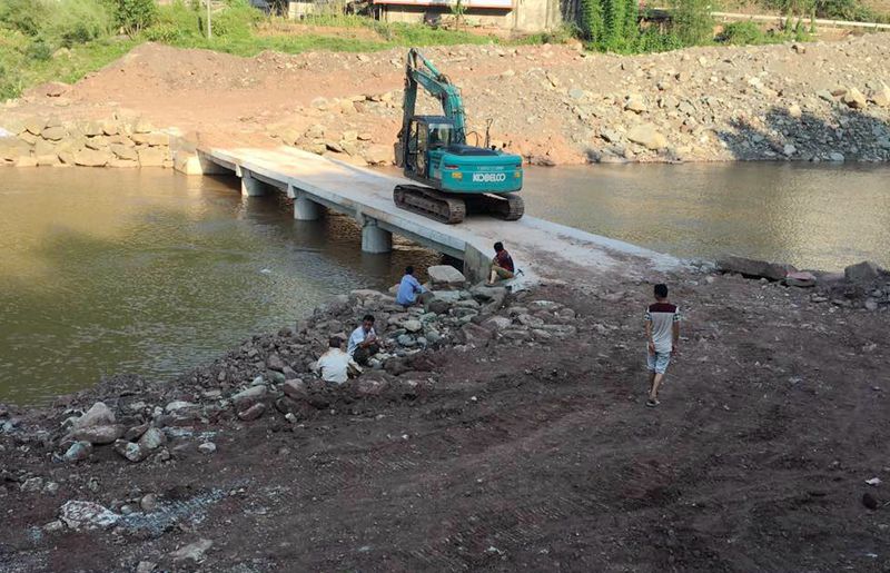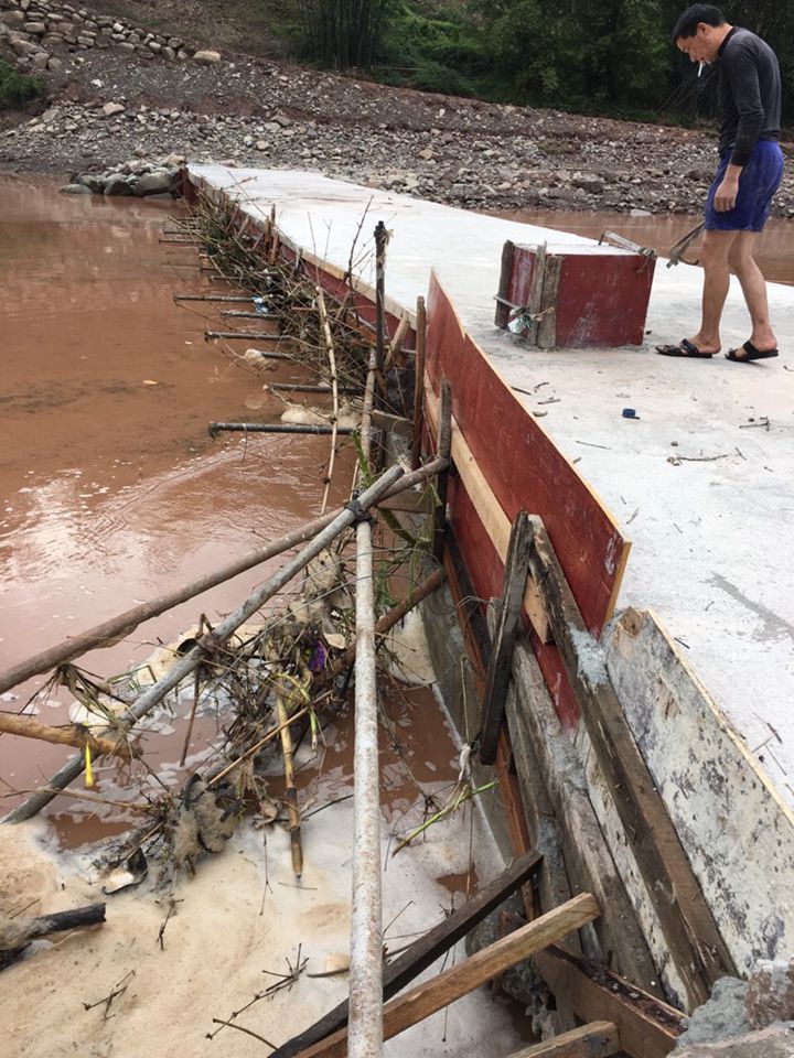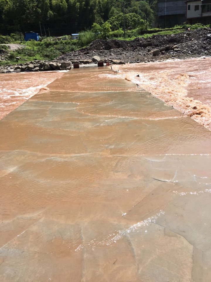 注:根据当地情况,这样大的洪水每年只有一两次,能淹没过桥面的大水也就三、四次,这样的洪水来得快,去得也快,一般一天左右。故,设计大桥从事实出发,桥面设计4.5米高,为半漫水桥,发洪水时大水从桥面漫过,这样公益修桥性价比最高,经济实用,坚固可靠。一年365天,350多天都能正常通车。