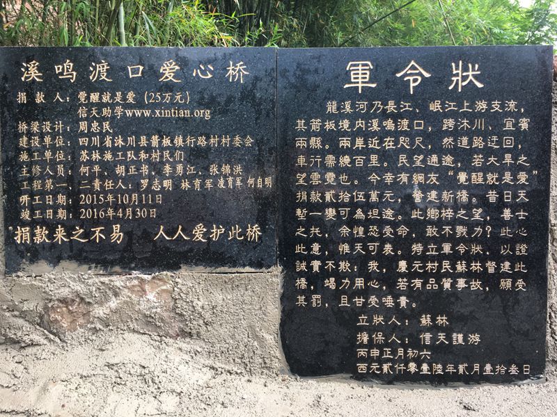 标题: 38座桥:四川省沐川县箭板镇行路村溪鸣渡口爱心桥(觉醒就是爱)