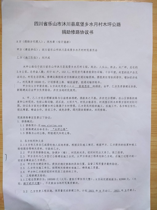 (5)修路预算分好几部分,有挖掘机、涵管、炸药爆破(山崖需要爆破)或者岩石破碎、堡坎、村民义务工、征地等。修路,捐款方不全包,捐款方出一大部分钱:挖掘费用、部分山崖爆破(如有的话)或破碎等。村民出义务工、涵管、征地费、或部分破碎费用,村民小额集资。