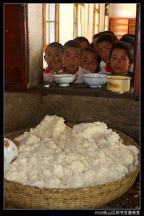 学生们平时只能吃土豆、野菜等。一年也很难吃上肉。