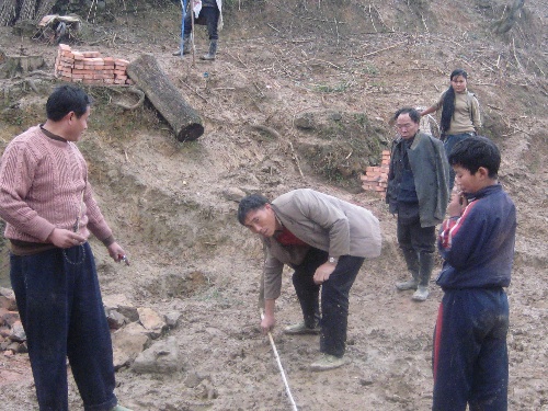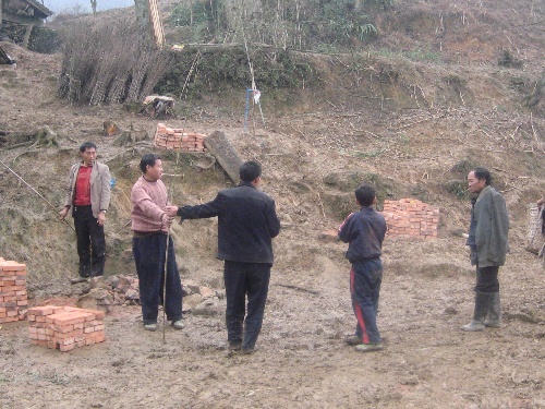 照片为村委会和村民共同验收地基,并提出意见和建议。