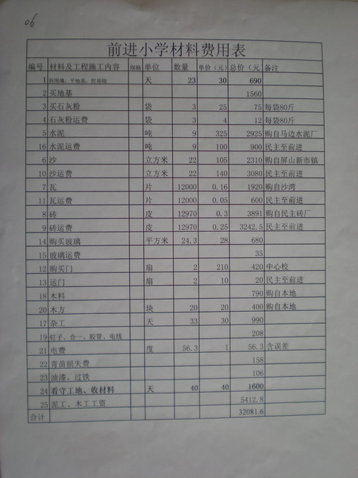 我们从新建的宇春小学前往已经竣工的前进小学,这个学校由于增加了厕所和修建部分围墙及硬化地面,估计也将超出原来的预算。
