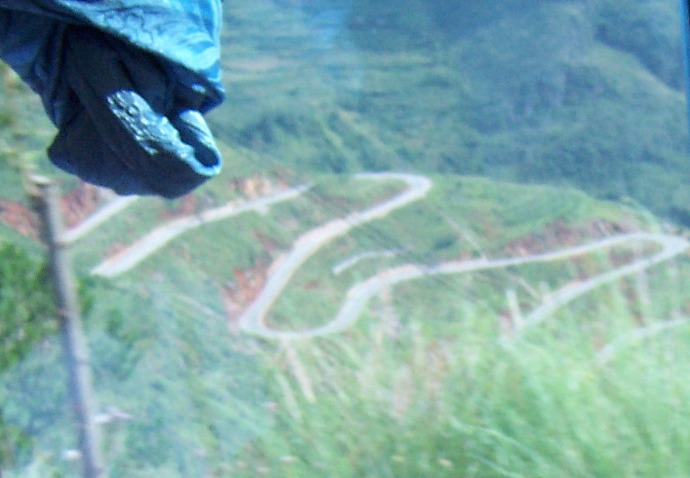 2006/9/4(周一),从丽江搭乘开往宁蒗县城的班车,历时约三个小时,一路上基本上都是这样的盘山路。