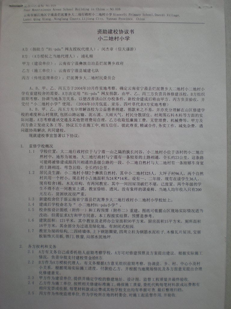 二、《资助建校协议书》及附件《图纸》和《工程预算单 》