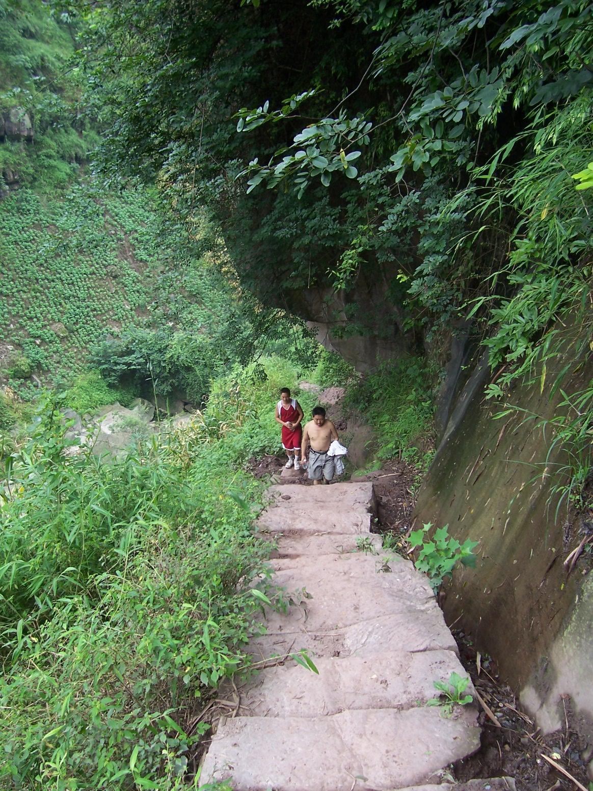 这里的一个代课教师是费宣芝老师,个子不高但走山路很快,一直同我们一起走了一天。她说:“天天走,走惯了……”是蚕桑专业中专毕业生,已经教学11年了,现在月工资300元,是由县财政发给,原来是每年只发给10个月的,这两年才改为每年发12个月了——拟帮助她申请麦田计划的资助。