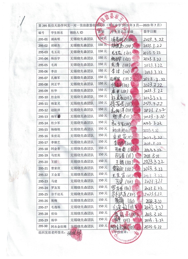 第295批翠玉中学(2023年3月-2023年7月)受助学生签字确认单