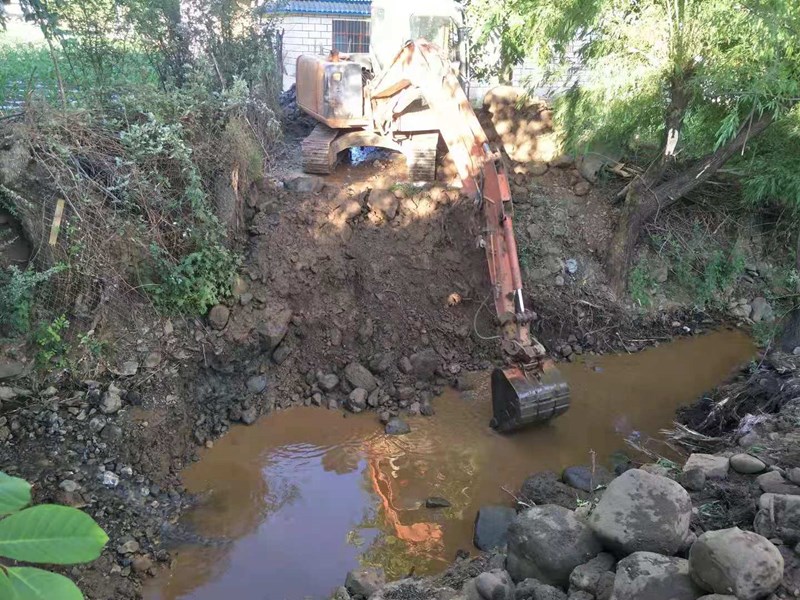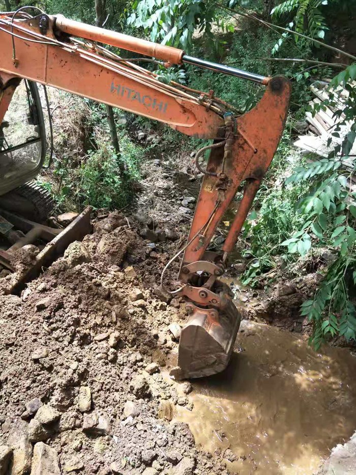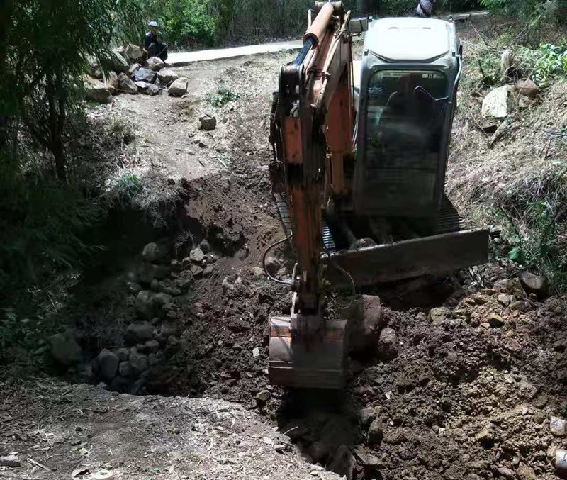挖掘机开挖的照片包括1桥和2桥,因为距离不远,挖掘机一次先后开挖两座小桥的基础。
