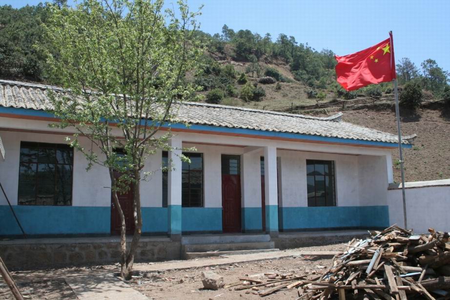 老江河是卧在山沟里的一个村子,全村四五百人,小学校在村子边的山坡上,现有在校生36人,1名老师。捐建的新校舍刚刚完工,在破败的村舍中成为一道亮丽的风景。