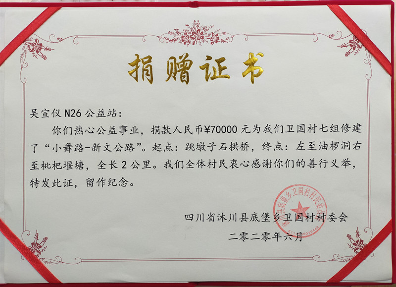 (1)爱心人捐款、村民投工投劳一起修土路,干季能通车;