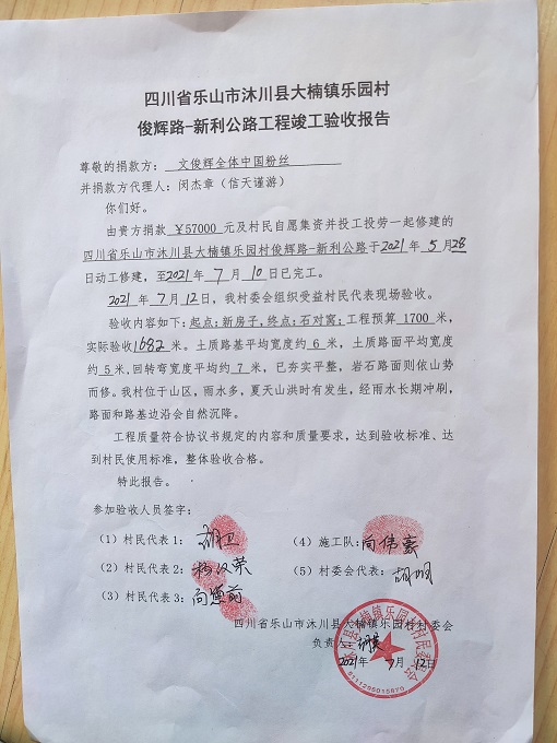 新利公路位于四川省 乐山 市 沐川 县 大楠 镇 乐园 村 5 组,原沐川县炭库乡乐园村10组。全长约 1.7 公里,其中新开挖1.3公里,改建修路0.4公里;起点:新房子,终点:石对窝;受益农户 23 户,直接受益人数 98人,间接受益人数约 500 人(周边的人也从此路过)。修路能给老百姓解决日常出行、生产运输困难的问题,更是惠及老百姓的一条经济增收路。村民共集资 4800 元,计划修通土质路、铺设涵管、能通运输四轮车。